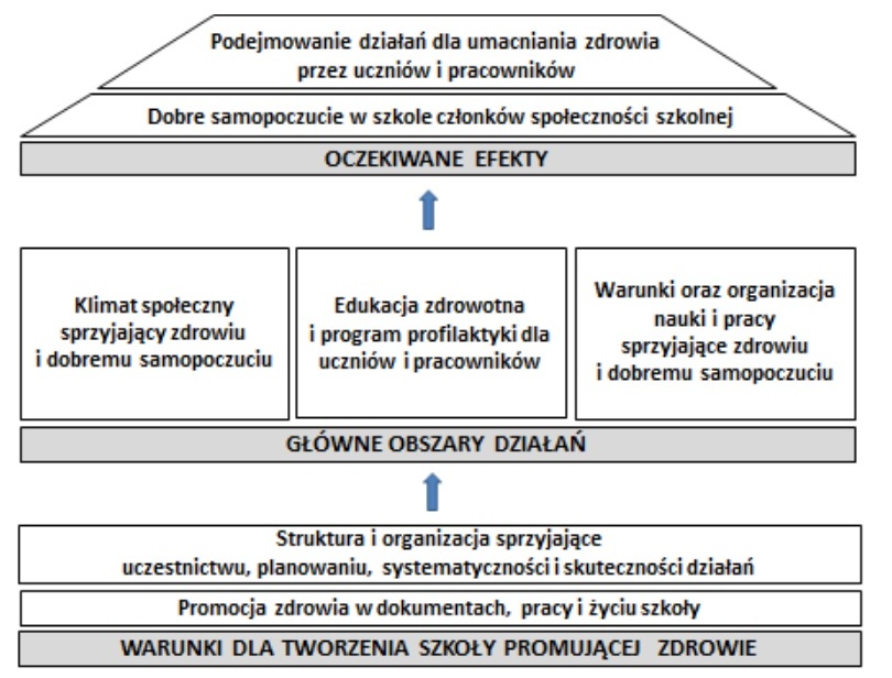 - systematycznie i planowo tworzy środowisko społeczne i fizyczne sprzyjające zdrowiu i dobremu samopoczuciu społeczności szkolnej,