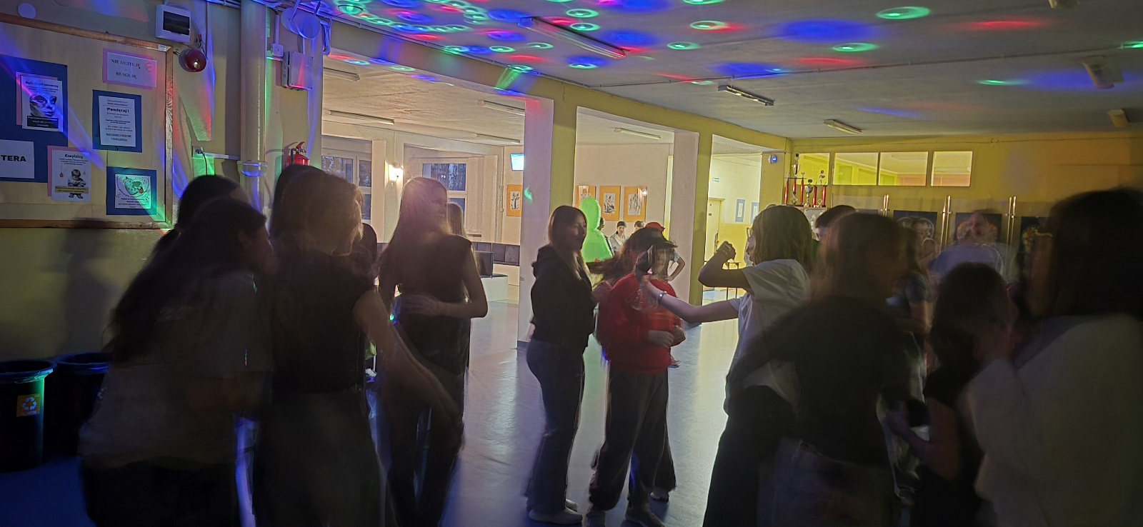 Dnia 29 stycznia odbyła się szkolna dyskoteka karnawałowa dla klas 4-8 i była mega udana. Uczniowie przyszli w kreatywnych przebraniach a korytarz szkolny zamienił się w prawdziwy parkiet dzięki kolorowym światłom i głośnej muzyce. DJ puszczał znane hity, więc każdy mógł potańczyć z ekipą. Nie zabrakło wspólnych zabaw  i kawiarenki, w której można było za symboliczną cenę kupić coś do przekąszenia i picia. Atmosfera była super, wszyscy świetnie się bawili i na pewno długo będziemy wspominać tę dyskotekę.