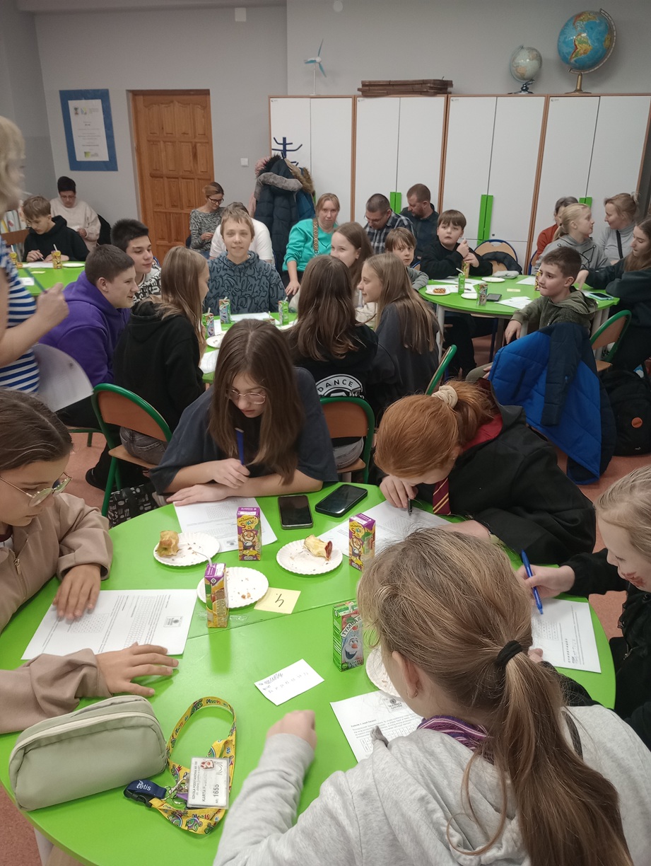 Choć spotykaliśmy się po lekcjach, to uczestnikom nie brakowało energii do działania – część dofinansowania przeznaczyliśmy na smaczne i zdrowe przekąski i napoje. Uczniowie i ich rodzice z zaangażowaniem łamali szyfry, samodzielnie lub w grupach.