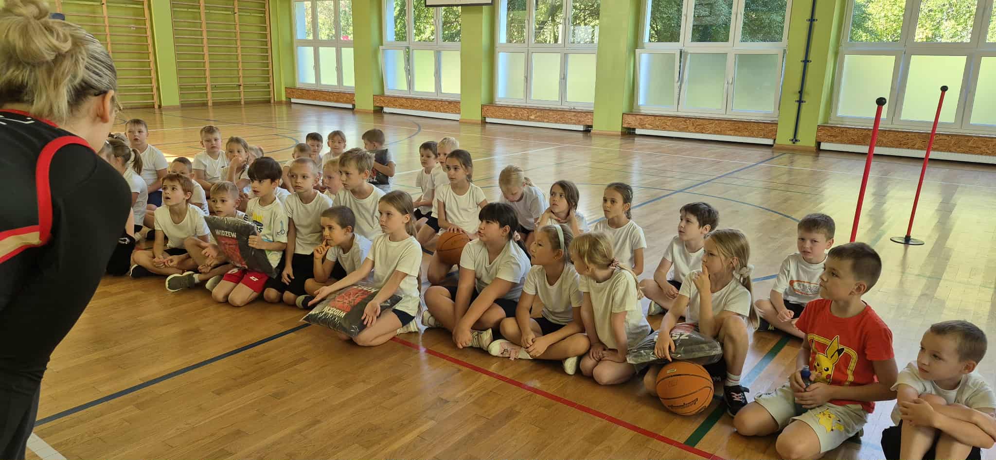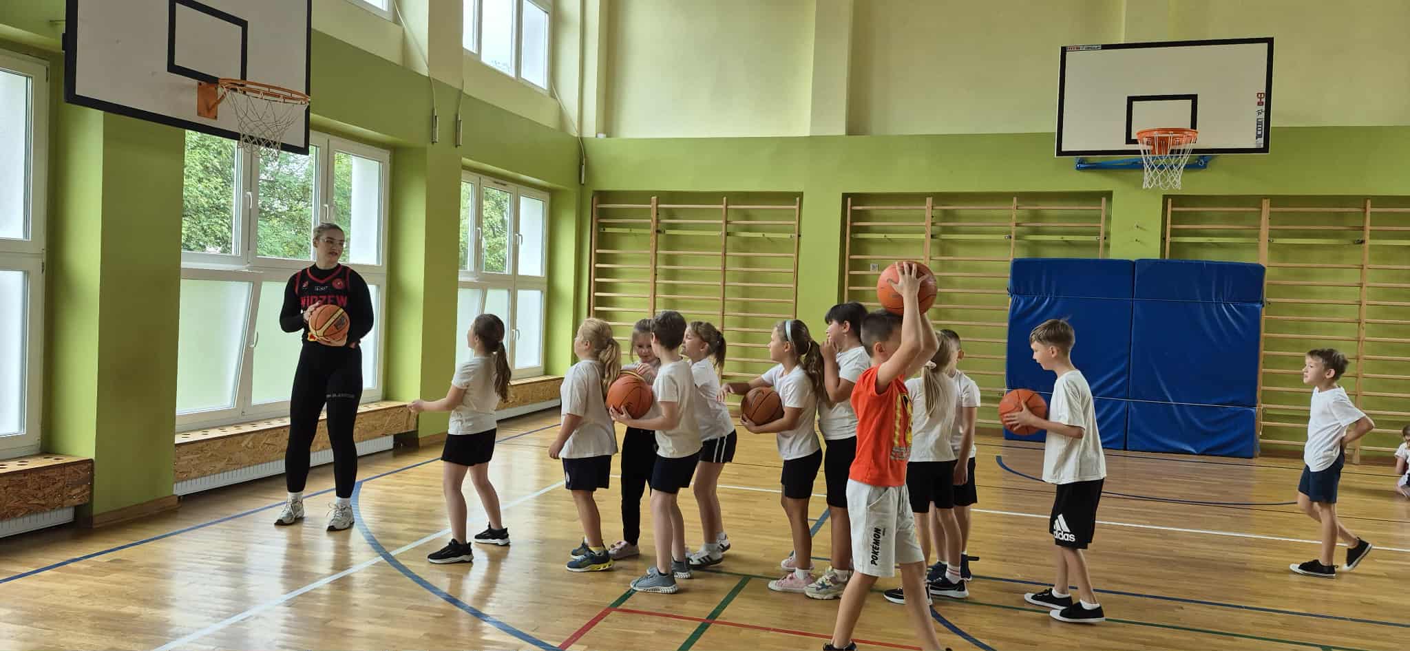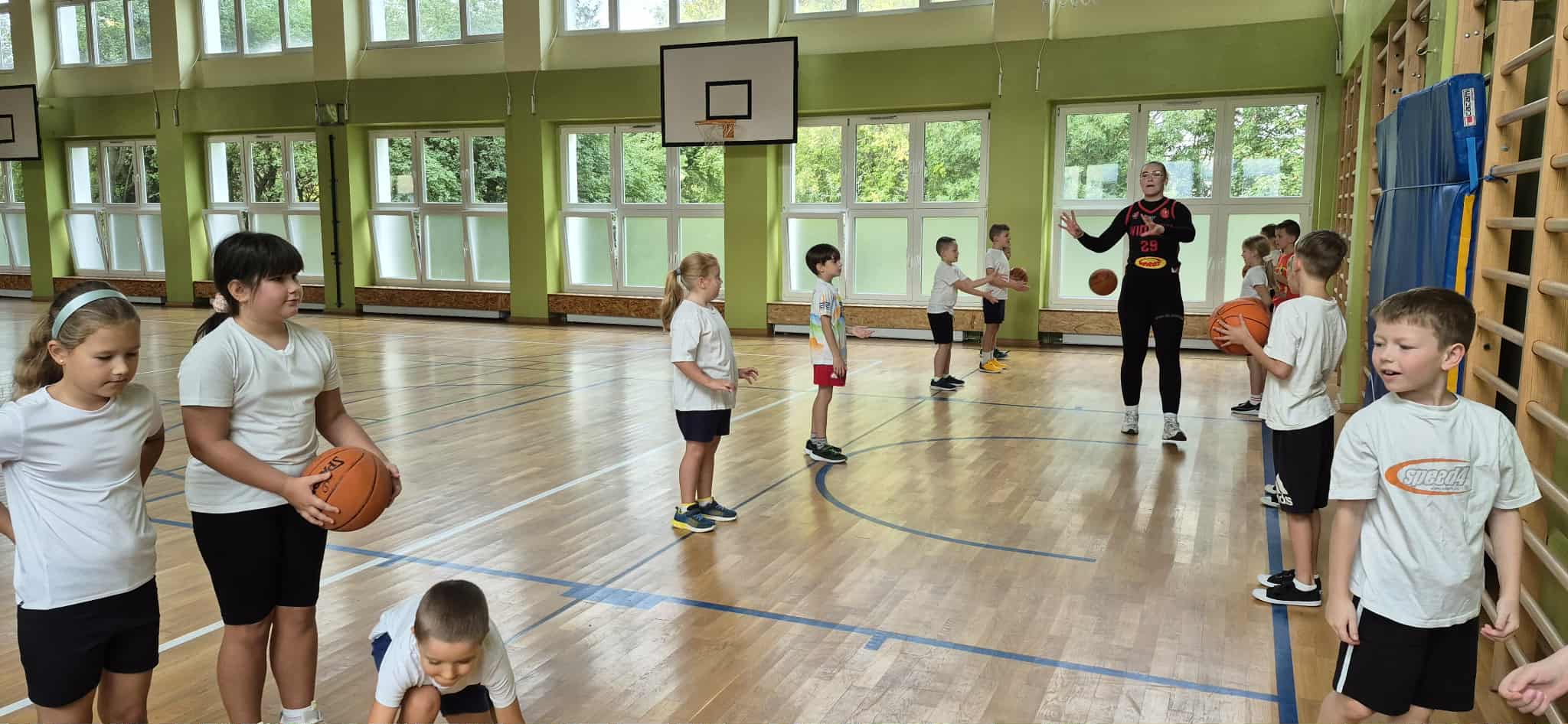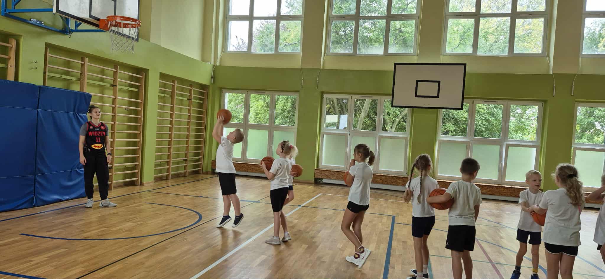 Sportowe spotkanie z zawodnikami dla uczniów klas 2a i 2b to inicjatywa, w ramach której mają okazję spotkać się z utytułowanymi sportowcami, którzy dzielą się swoimi doświadczeniami, inspirują do aktywności fizycznej i promują zdrowy styl życia, a także wspierają budowanie relacji między uczestnikami. Takie wydarzenie odbyło się 18 września 2025r w naszej szkole. Mieliśmy okazję gościć w naszej szkole zawodniczki koszykówki z KS Widzew w ramach projektu ,,Widzew w Twojej Szkole’’. Zawodniczki pokazały elementy treningu oraz zabawy sportowe z wykorzystaniem różnych akcesoriów sportowych związanych z koszykówką. Dzieci miały okazję nie tylko porozmawiać z Nimi, ale pod ich okiem trenować. Kto wie, może wśród naszych małych sportowców kryje się kolejny koszykarski talent!? Na zakończenie wydarzenia oprócz możliwości zrobienia sobie pamiątkowych zdjęć, dzieci otrzymały od gości bardzo miłe upominki.