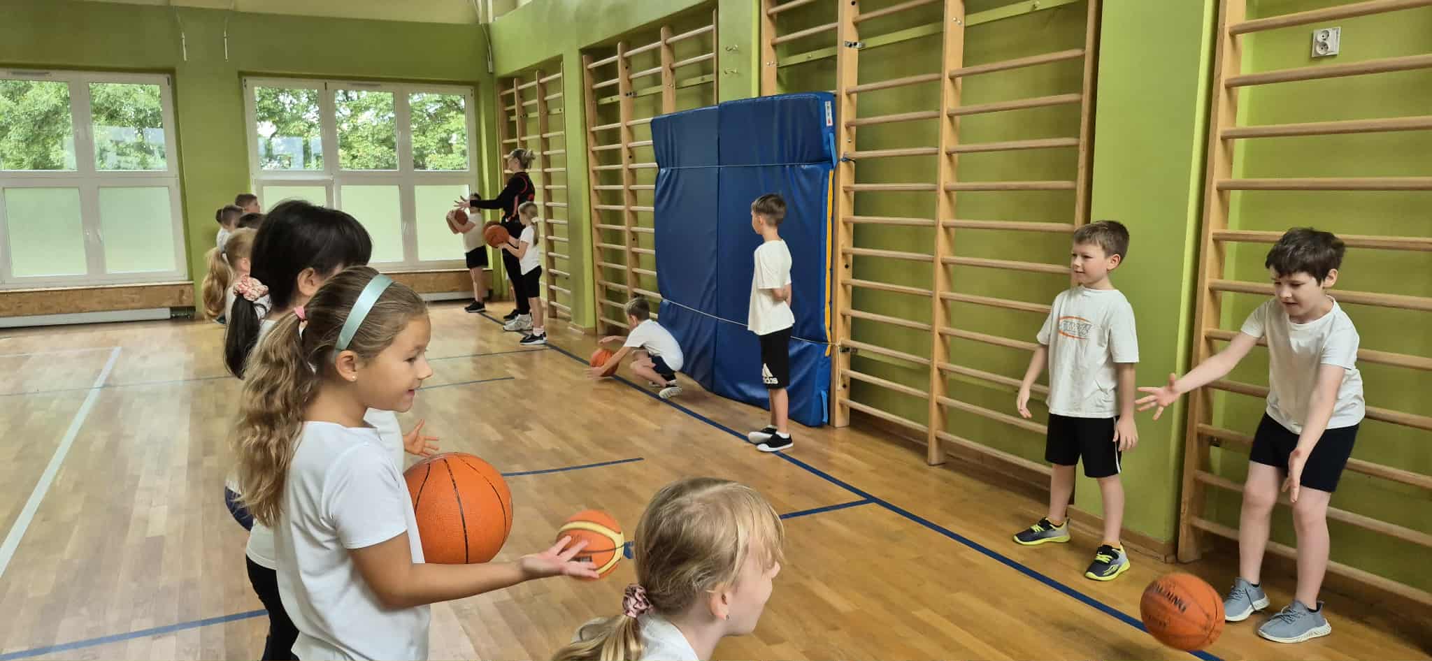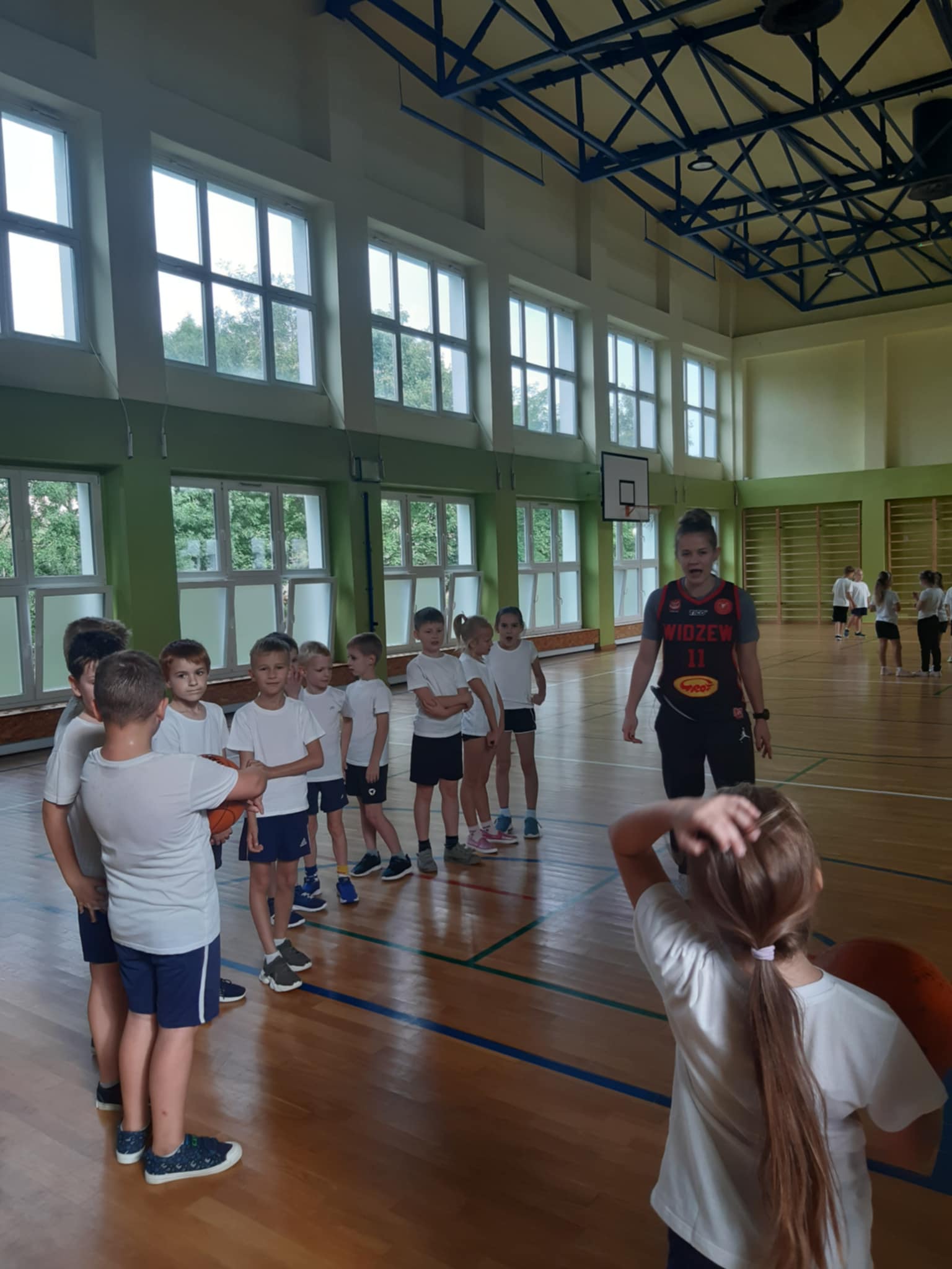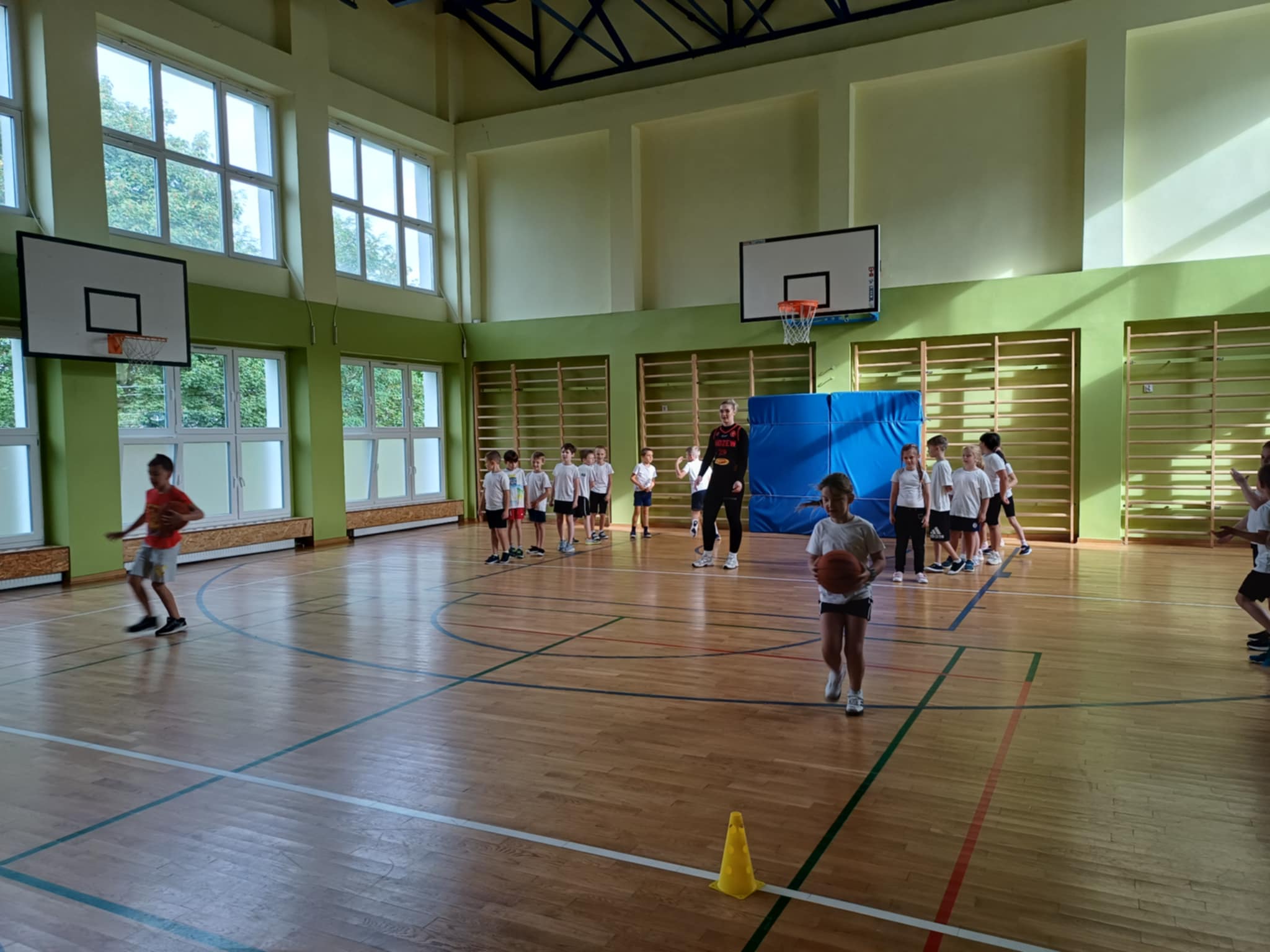 Sportowe spotkanie z zawodnikami dla uczniów klas 2a i 2b to inicjatywa, w ramach której mają okazję spotkać się z utytułowanymi sportowcami, którzy dzielą się swoimi doświadczeniami, inspirują do aktywności fizycznej i promują zdrowy styl życia, a także wspierają budowanie relacji między uczestnikami. Takie wydarzenie odbyło się 18 września 2025r w naszej szkole. Mieliśmy okazję gościć w naszej szkole zawodniczki koszykówki z KS Widzew w ramach projektu ,,Widzew w Twojej Szkole’’. Zawodniczki pokazały elementy treningu oraz zabawy sportowe z wykorzystaniem różnych akcesoriów sportowych związanych z koszykówką. Dzieci miały okazję nie tylko porozmawiać z Nimi, ale pod ich okiem trenować. Kto wie, może wśród naszych małych sportowców kryje się kolejny koszykarski talent!? Na zakończenie wydarzenia oprócz możliwości zrobienia sobie pamiątkowych zdjęć, dzieci otrzymały od gości bardzo miłe upominki.