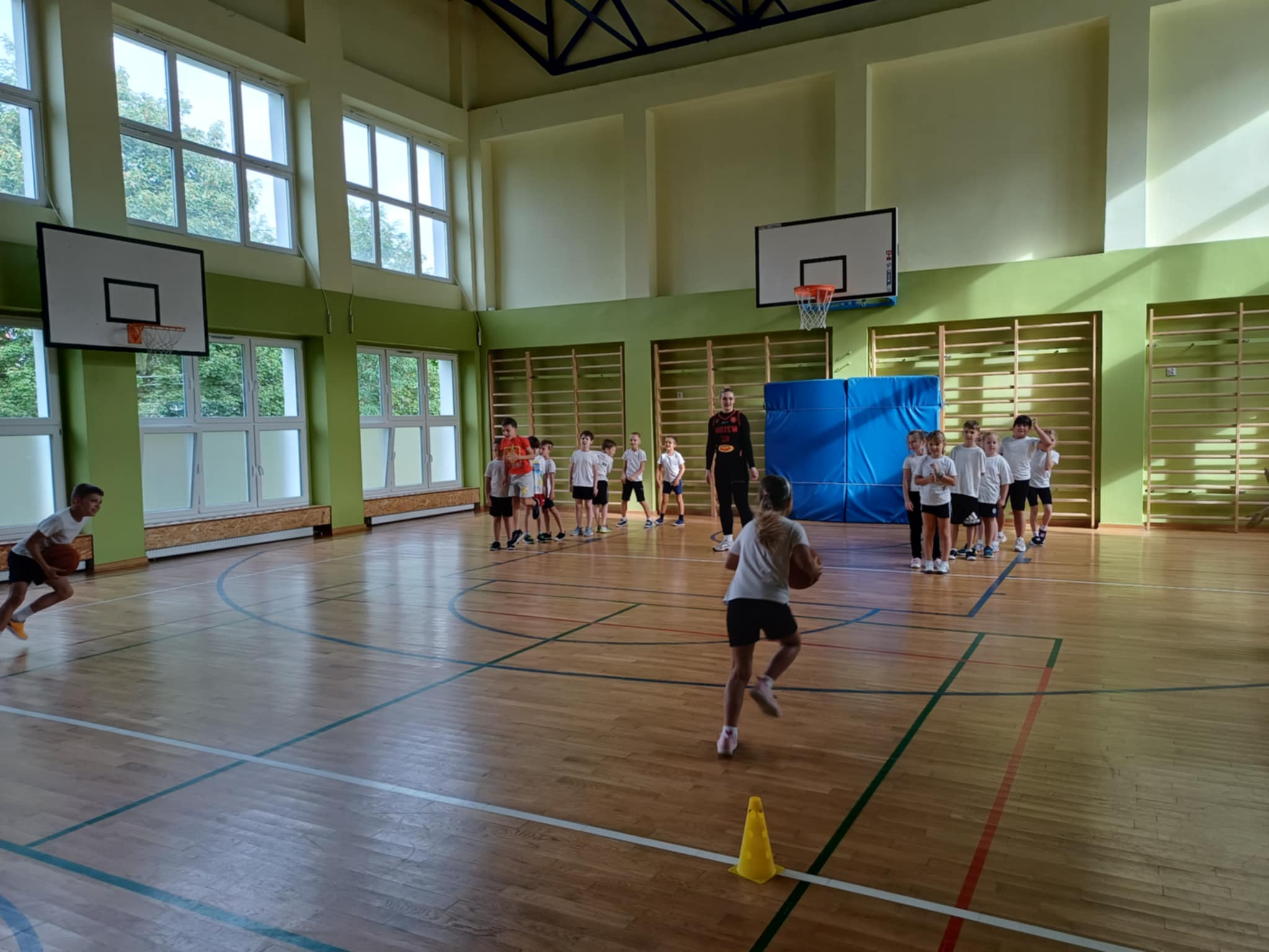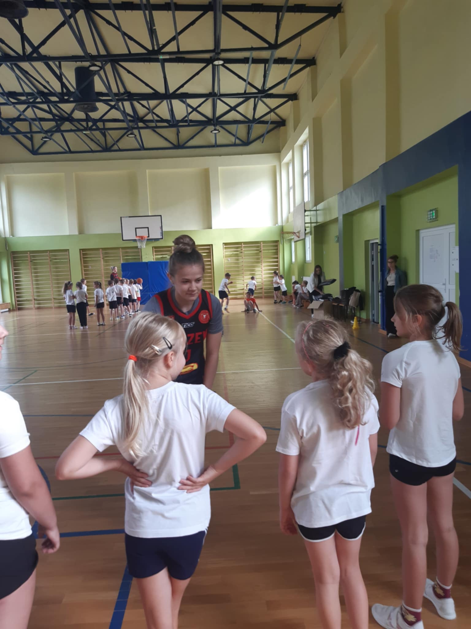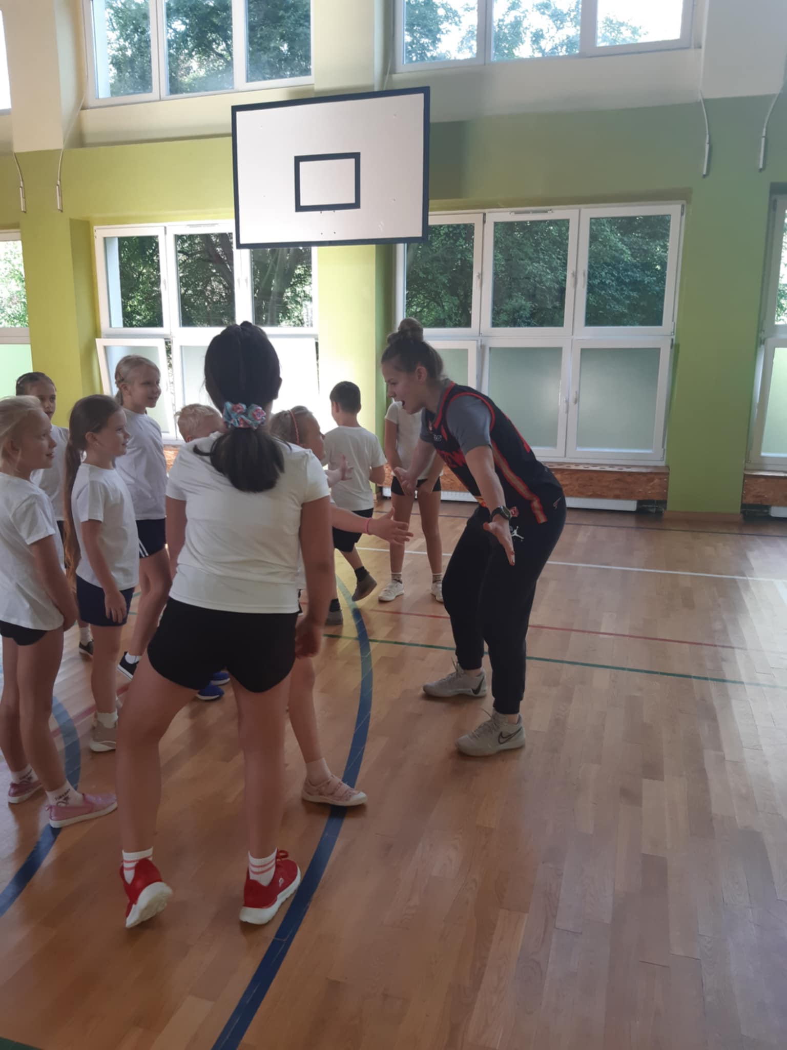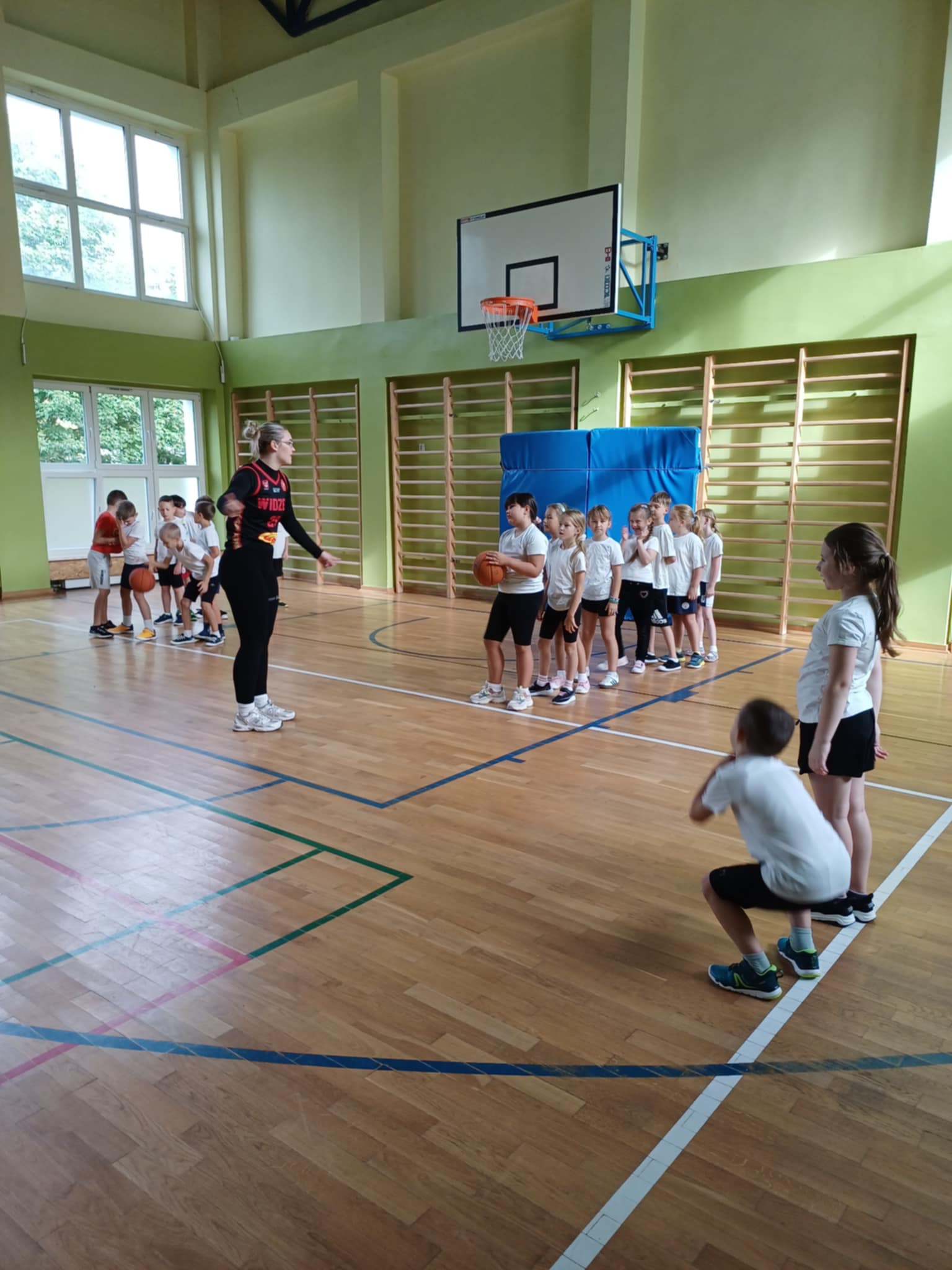 Sportowe spotkanie z zawodnikami dla uczniów klas 2a i 2b to inicjatywa, w ramach której mają okazję spotkać się z utytułowanymi sportowcami, którzy dzielą się swoimi doświadczeniami, inspirują do aktywności fizycznej i promują zdrowy styl życia, a także wspierają budowanie relacji między uczestnikami. Takie wydarzenie odbyło się 18 września 2025r w naszej szkole. Mieliśmy okazję gościć w naszej szkole zawodniczki koszykówki z KS Widzew w ramach projektu ,,Widzew w Twojej Szkole’’. Zawodniczki pokazały elementy treningu oraz zabawy sportowe z wykorzystaniem różnych akcesoriów sportowych związanych z koszykówką. Dzieci miały okazję nie tylko porozmawiać z Nimi, ale pod ich okiem trenować. Kto wie, może wśród naszych małych sportowców kryje się kolejny koszykarski talent!? Na zakończenie wydarzenia oprócz możliwości zrobienia sobie pamiątkowych zdjęć, dzieci otrzymały od gości bardzo miłe upominki.