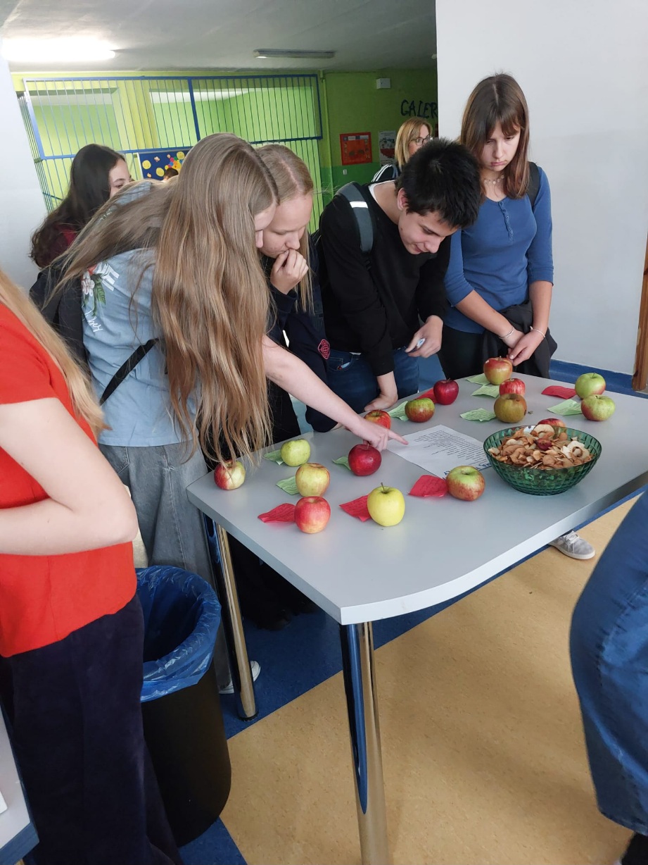 Polonistka pani Katarzyna Szczepanik natomiast przygotowała związki frazeologiczne związane z jabłkiem tj. „jabłko Adama” czy „jabłko niezgody”, które pozwalają uczniom rozwijać słownictwo i rozumienie przenośni, łączyć naukę z zabawą i tematem dnia.