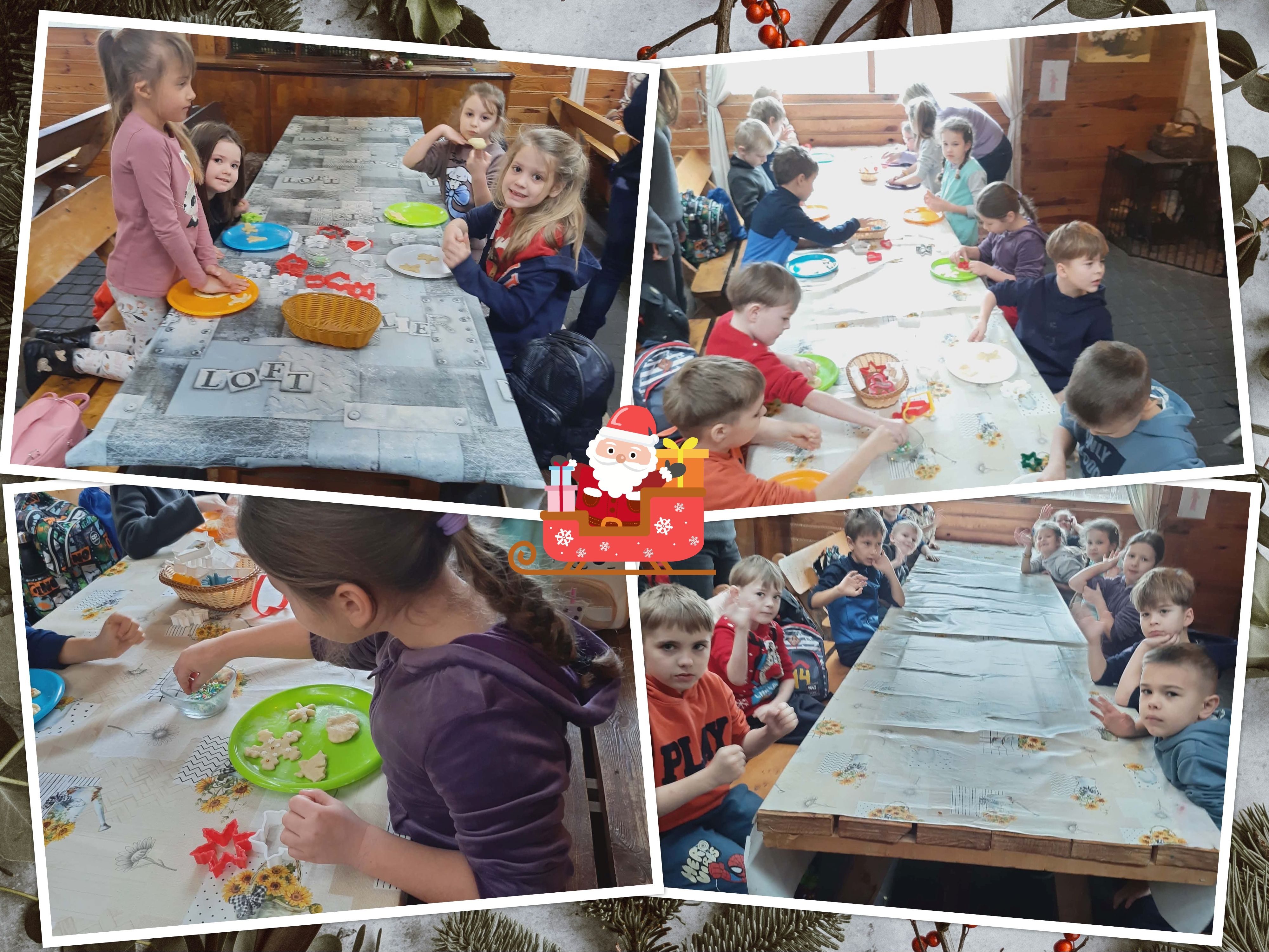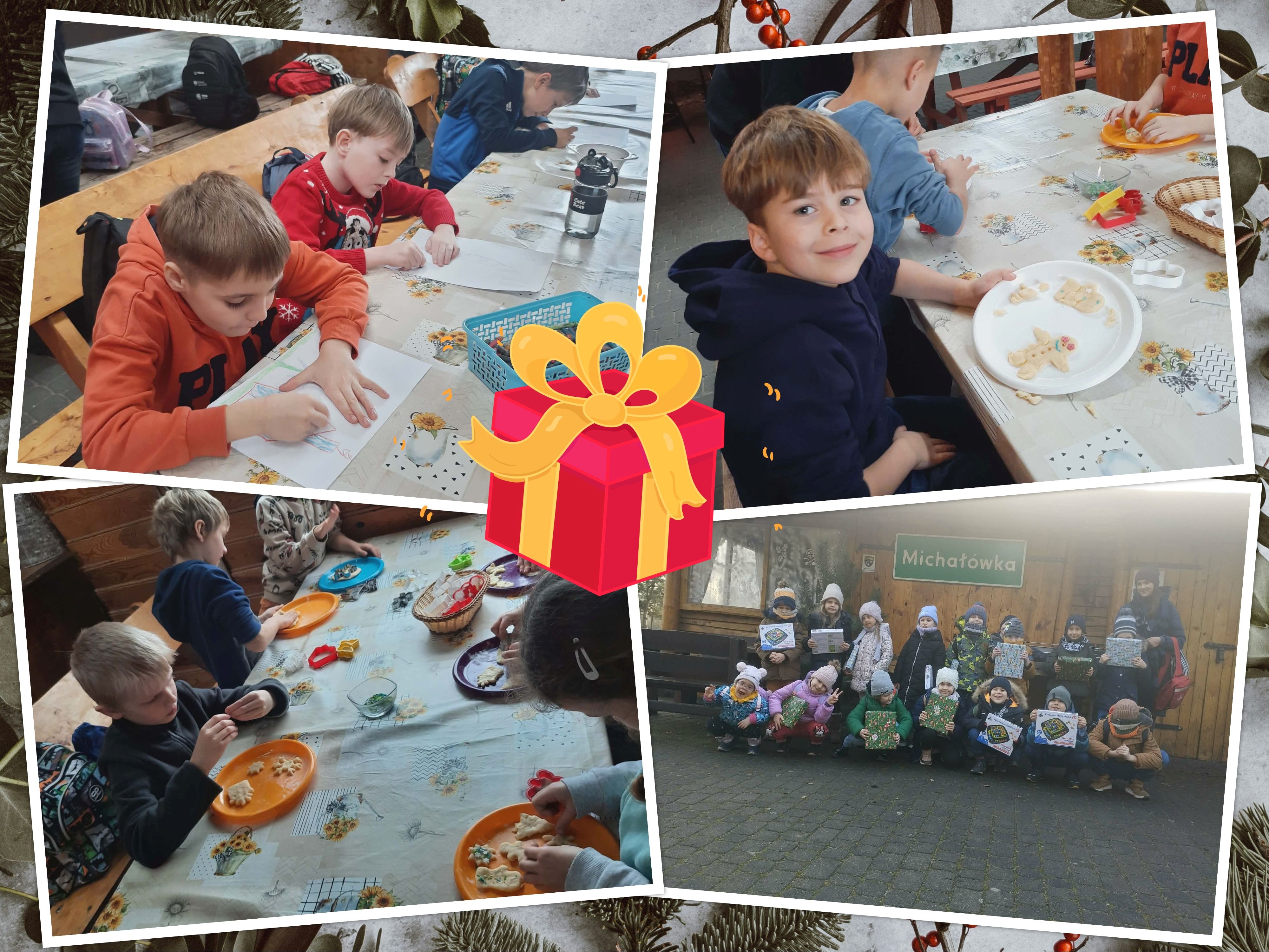 18 grudnia nasi pierwszoklasiści, po raz pierwszy na wspólnej wycieczce, uczestniczyli w Bożonarodzeniowych warsztatach w Michałówce. Z wielkim zapałem wykrawali ciasto na pierniczki, które później ozdabiali słodkimi posypkami. W międzyczasie rysowali podarunki dla Mikołaja, którego się jeszcze nie spodziewali, bowiem kolejne warsztaty tworzenia świątecznych stroików mocno ich pochłonęły. Jak michałówkowa tradycja nakazuje, wszyscy następnie udali się na spacer do zagrody z kucami, alpakami, koziołkiem Beniem i różnego rodzaju kurkami i gąskami. Uwieńczeniem niezwykle pracowitej wycieczki była wizyta u Mikołaja, który obdarował zaskoczonych pierwszaków najprawdziwszymi prezentami Wesołych Świąt!