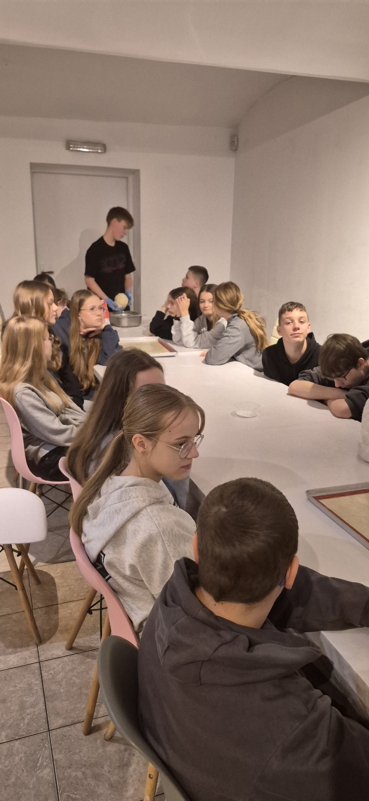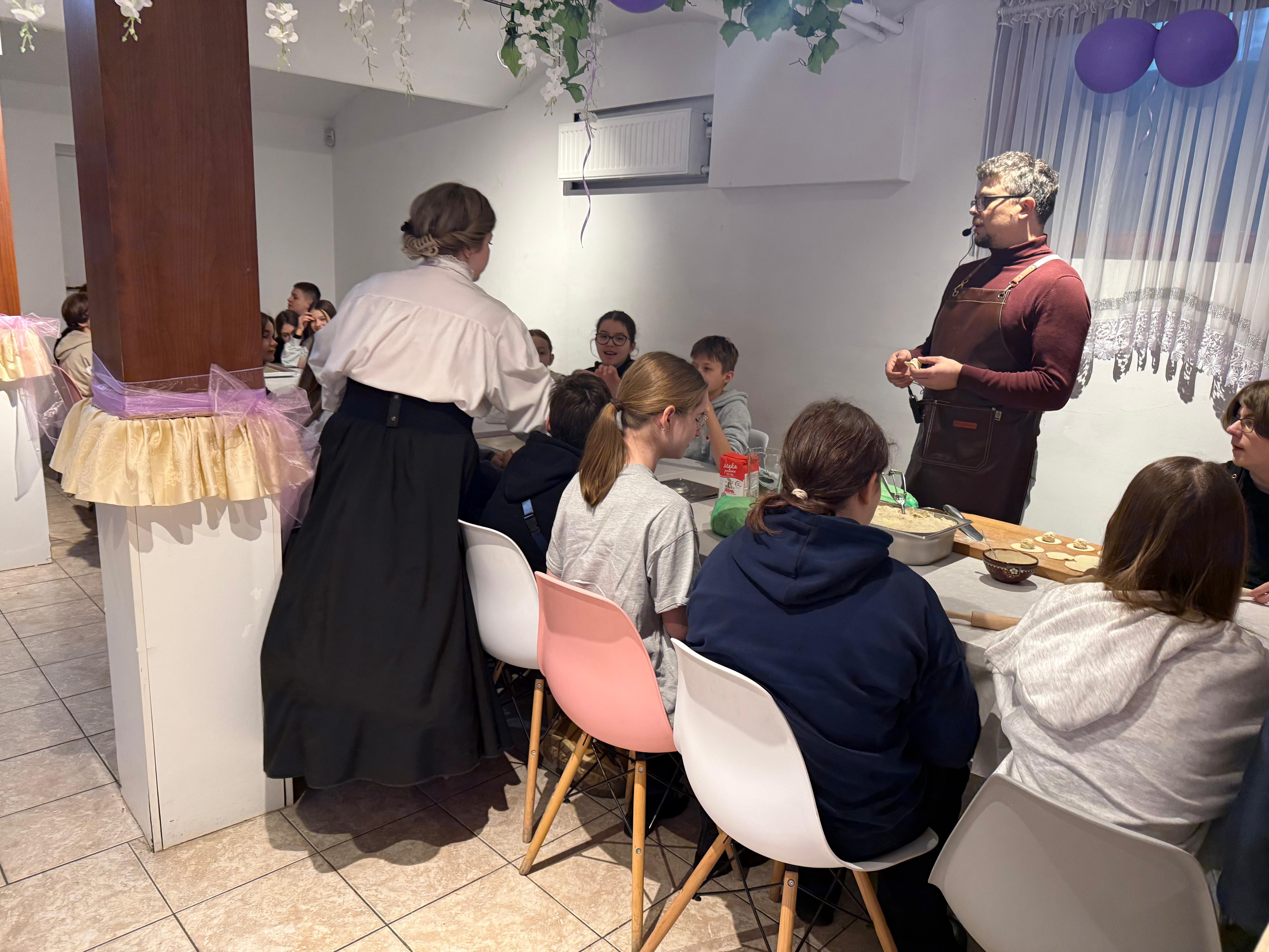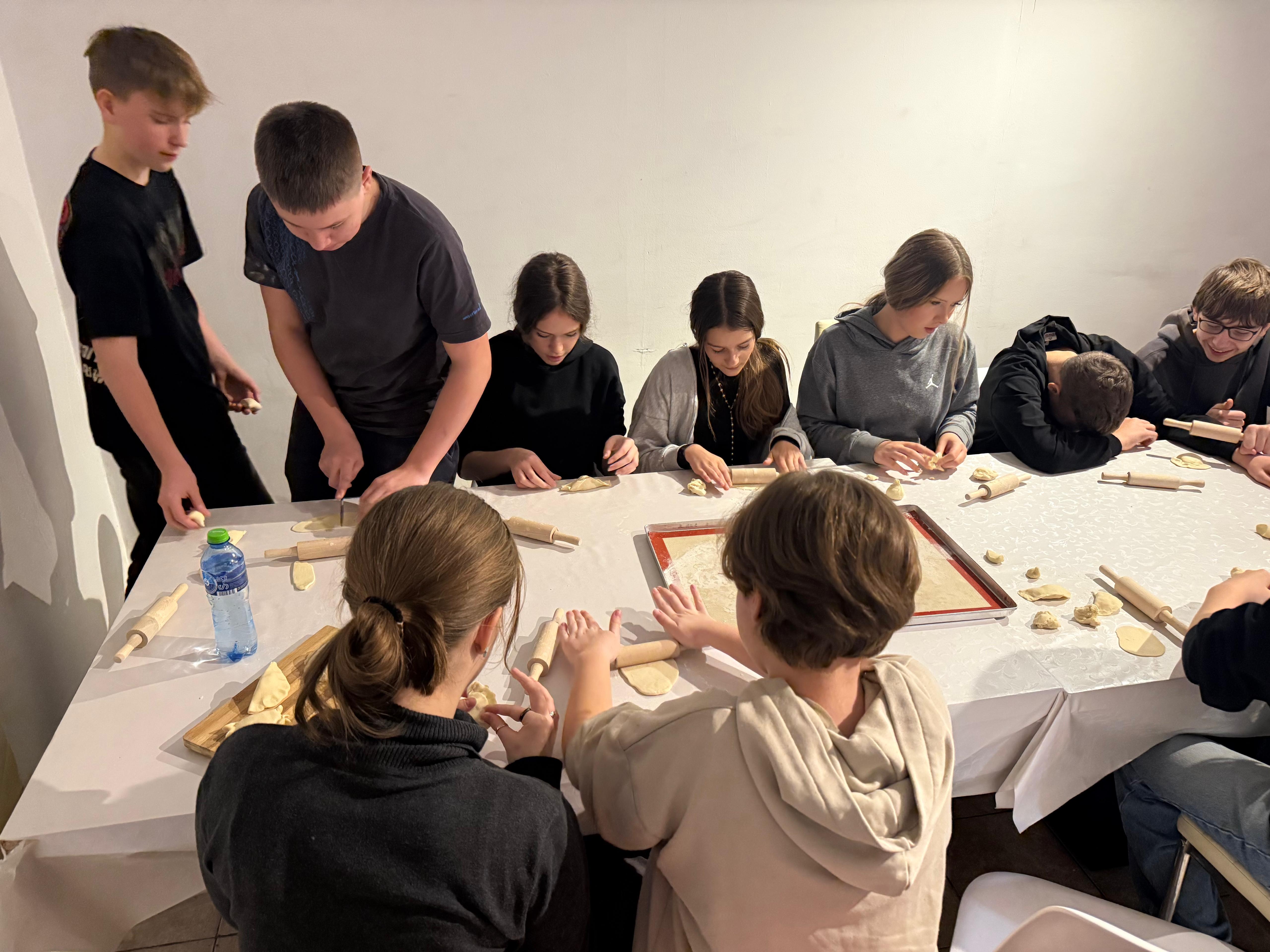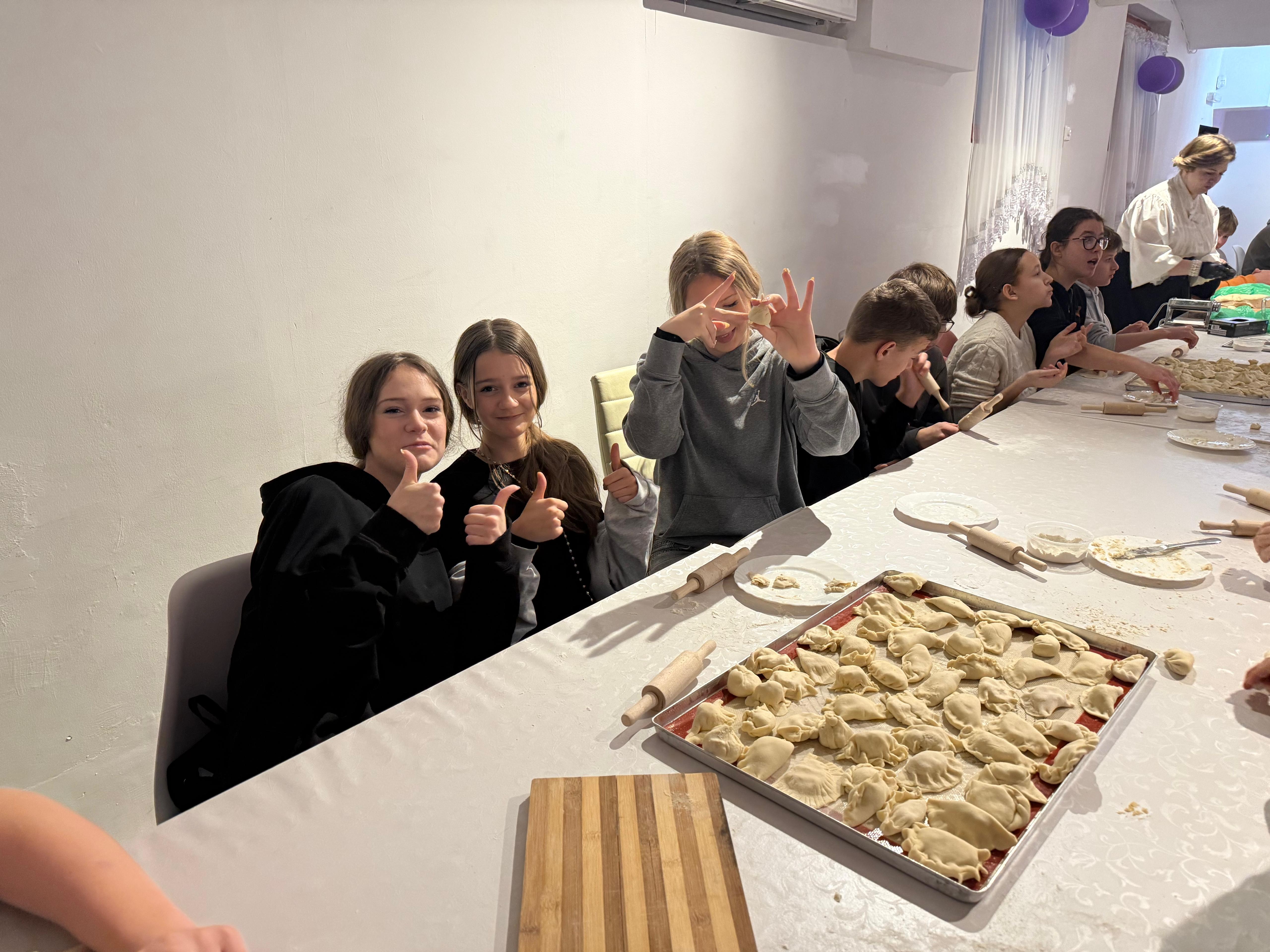 Dnia 19 grudnia klasy 7a i 7c wzięły udział w warsztatach kulinarnych w najstarszej w Łodzi pierogarni Teremok. Po krótkim wprowadzeniu uczniowie poznali etapy przygotowania ciasta i farszu, a następnie samodzielnie lepili pierogi pod opieką prowadzących. Zajęcia przebiegły w miłej i spokojnej atmosferze, sprzyjającej współpracy. Na zakończenie odbyła się degustacja przygotowanych potraw.