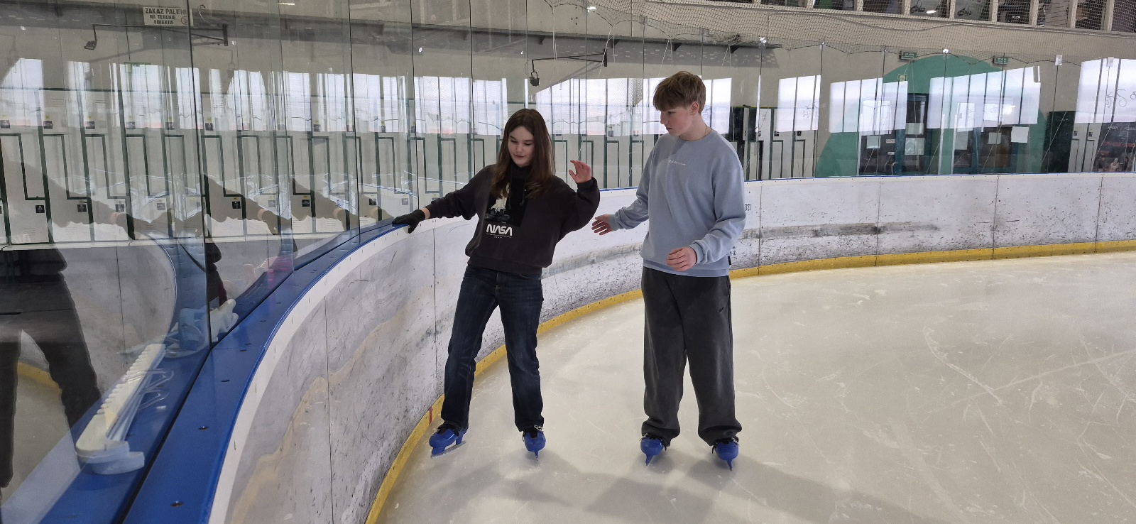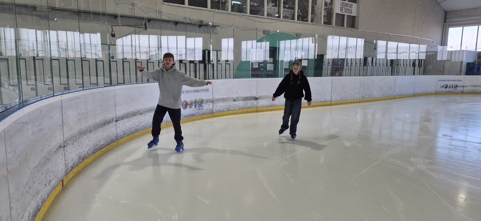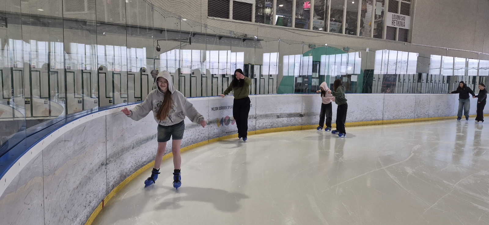Na początku większość uczniów trzymała się bandy, bo nie każdy czuł się mistrzem olimpijskim. Kilka osób zaliczyło spektakularne (ale na szczęście niegroźne!) upadki. Po chwili jednak wszyscy złapali równowagę i zaczęła się prawdziwa zabawa – wyścigi, jazda w parach, a nawet próby kręcenia piruetów.